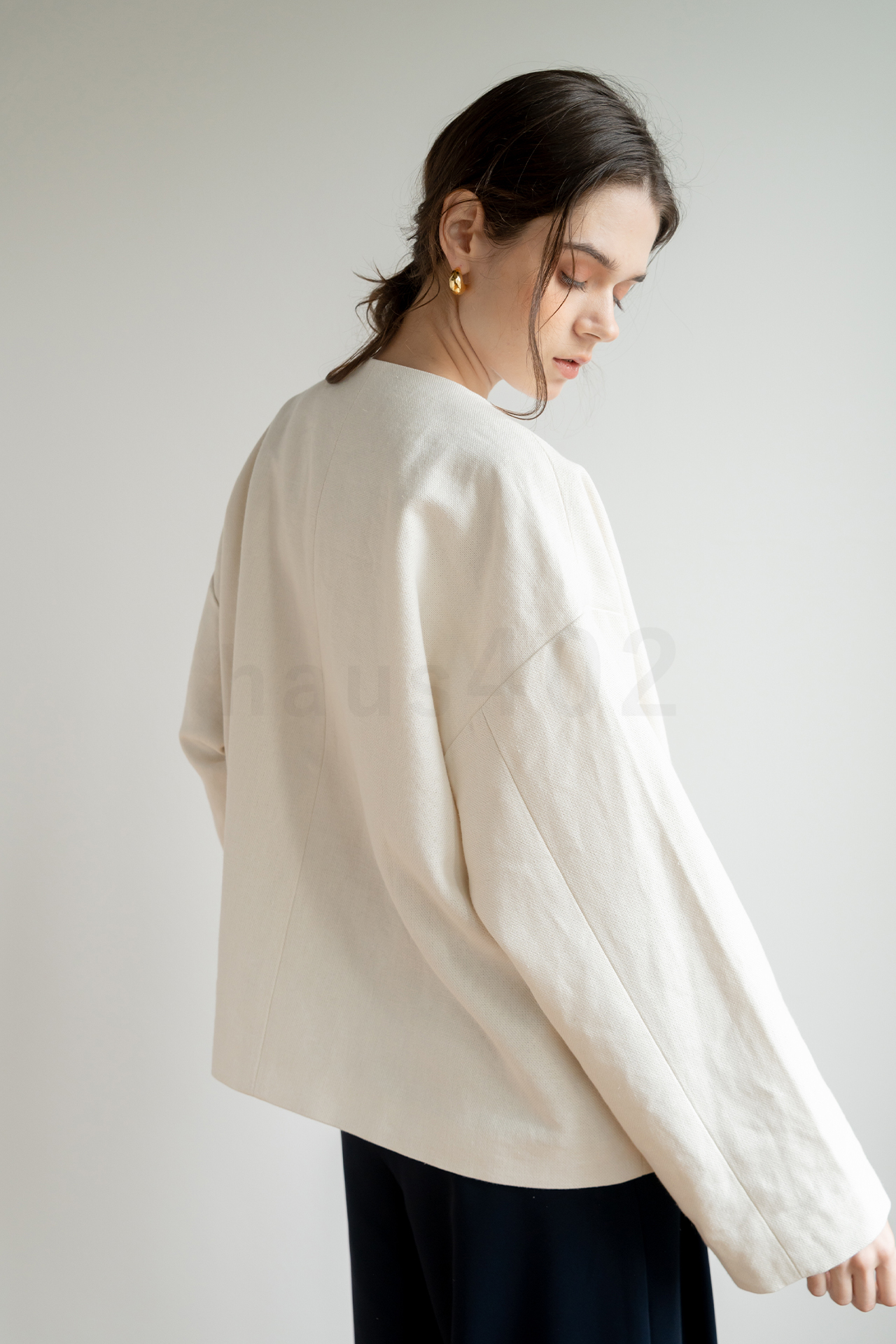 haus402でサイド光を演出して洋服の素材にフォーカスをあてたアパレルモデル撮影